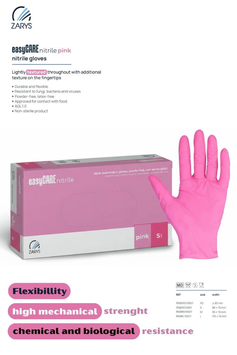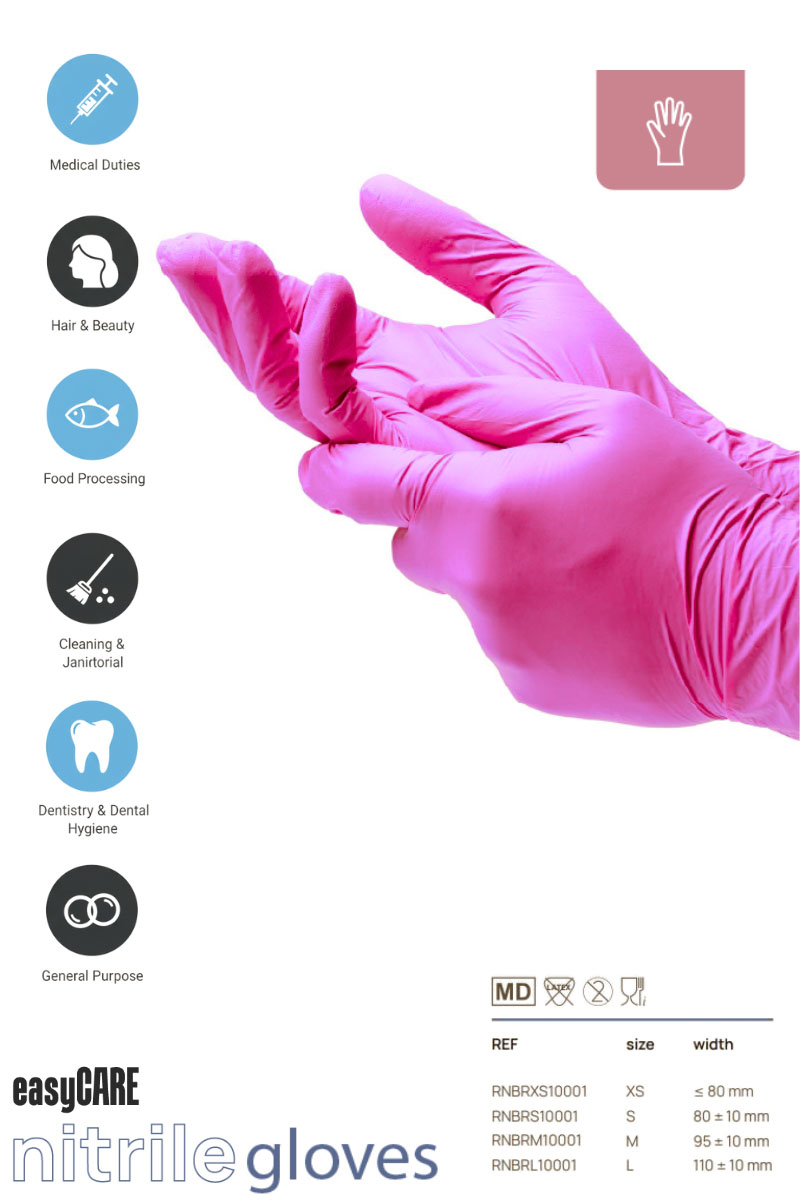 EasyCare Nitrile Examination Gloves Pink Powder-Free & Latex-Free (100-Pack)