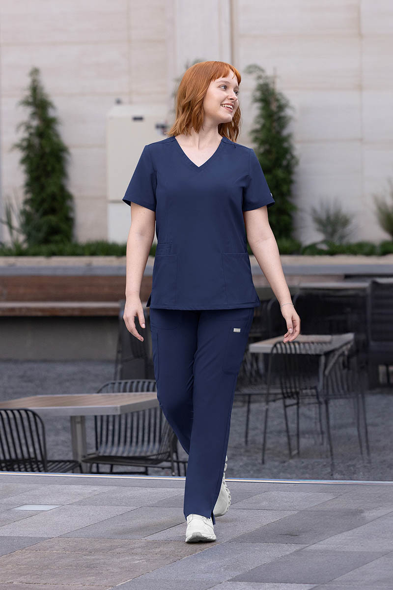 athletic silhouette that avoids the bulk of traditional medical trousers.