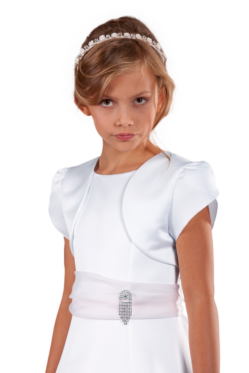 The sateen bolero with short sleeves, which we are offering you, is a completely modern and a new idea, for the first communion of your child.
