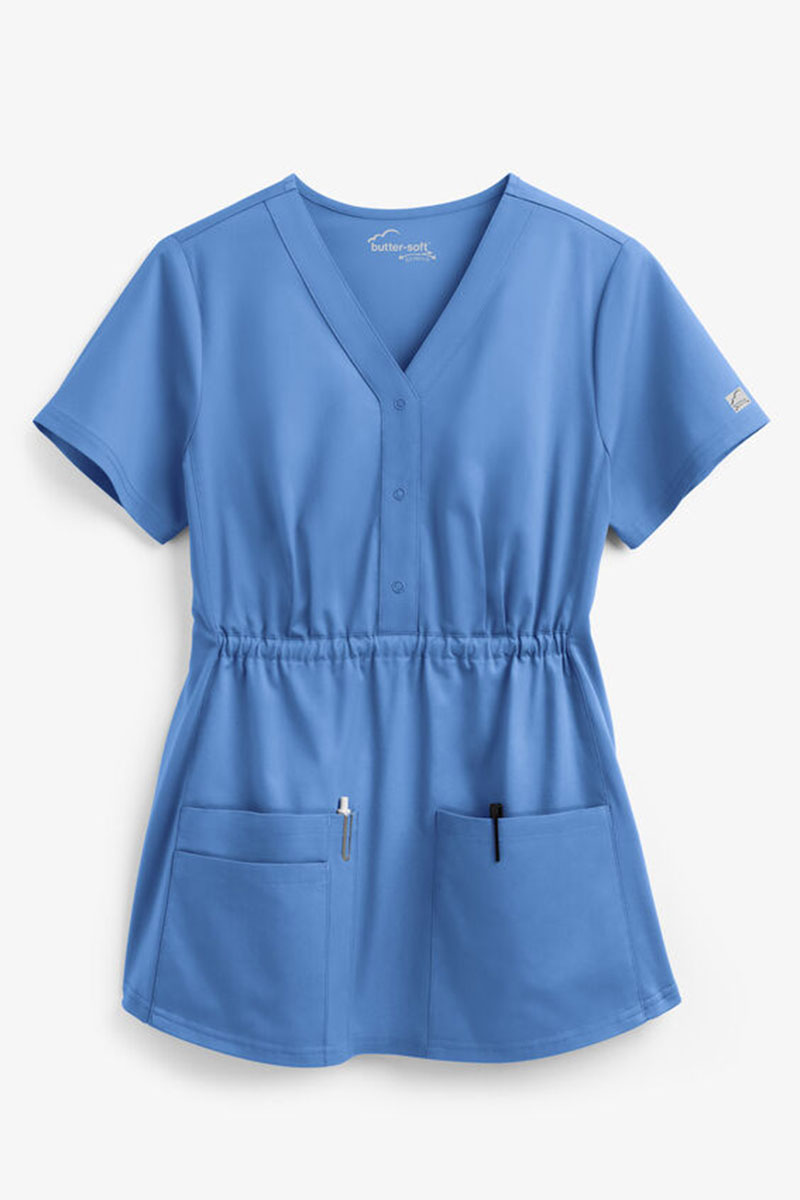 Butter Soft Stretch Side Panels Maternity Scrub Top Ceil Blue