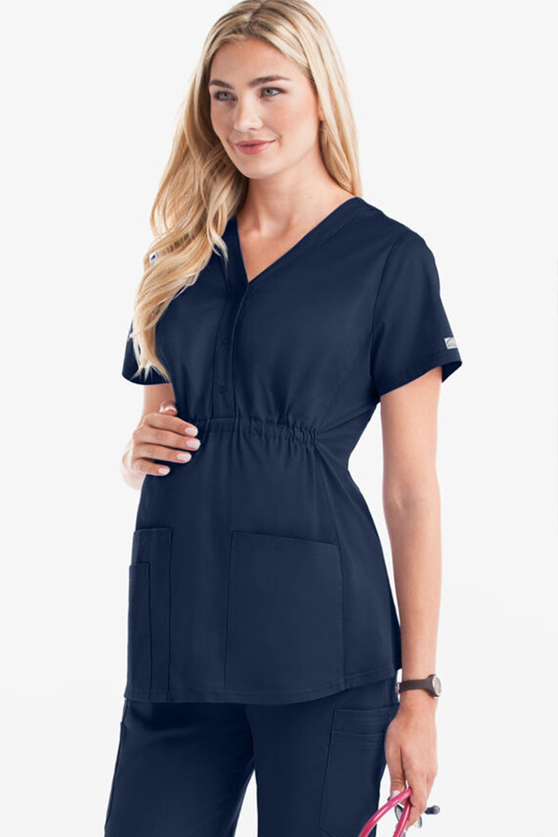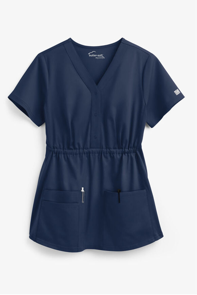 Butter Soft Stretch Side Panels Maternity Scrub Top Navy