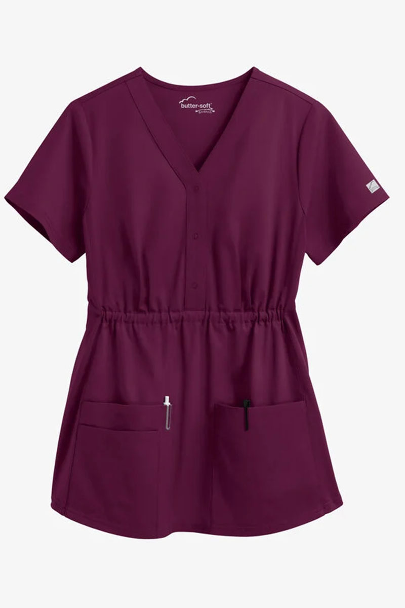 Available in an elegant wine colour, this scrub is designed to make you stand out.