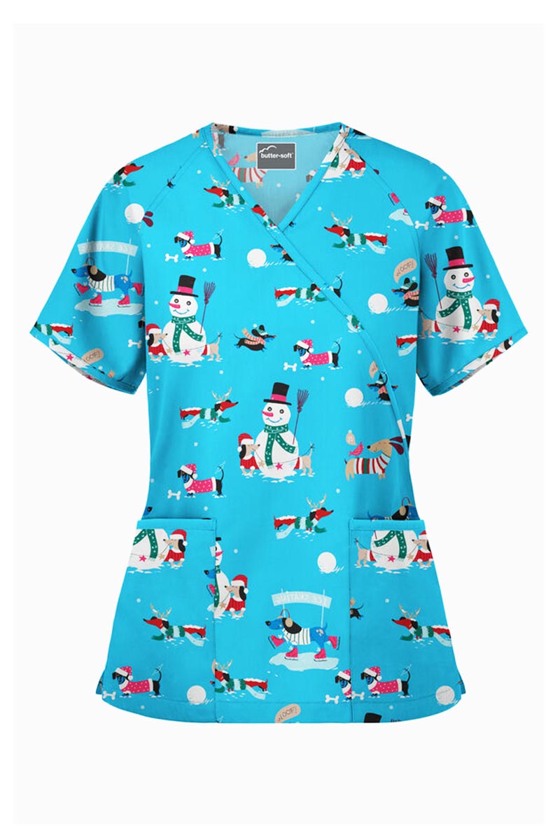 Christmas Holiday Fun Mock Wrap Top Turquoise