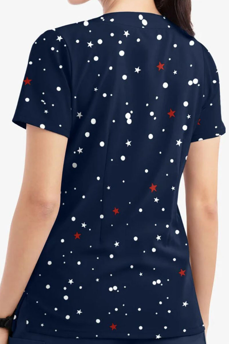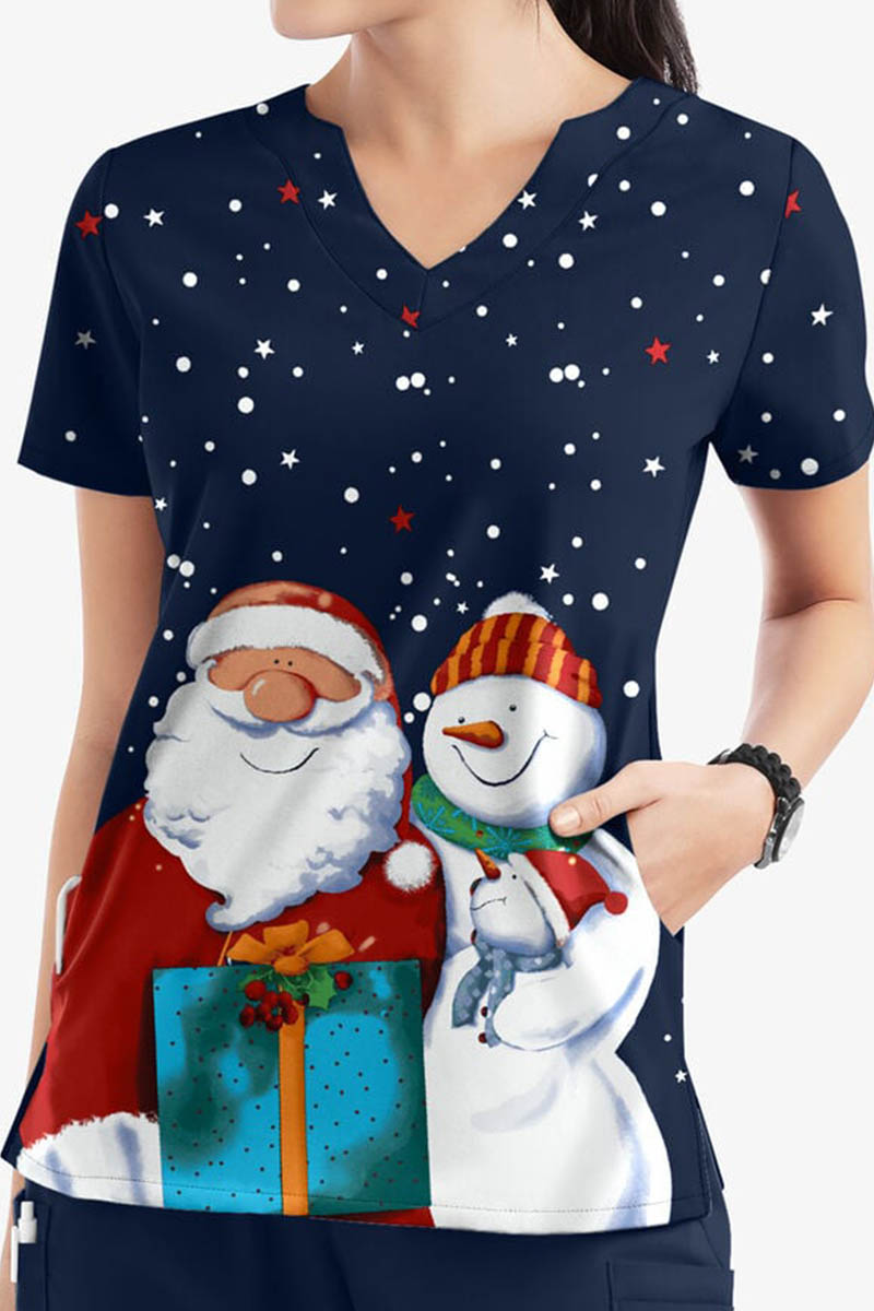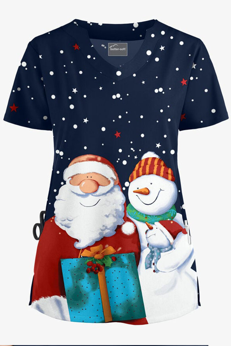 Prepare to keep the holiday cheer alive at work with this modern scrub top!