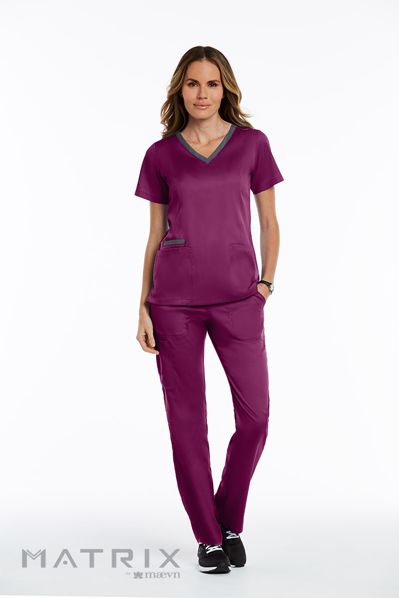 The Maevn Matrix short sleeve medical top in wine colour is designed