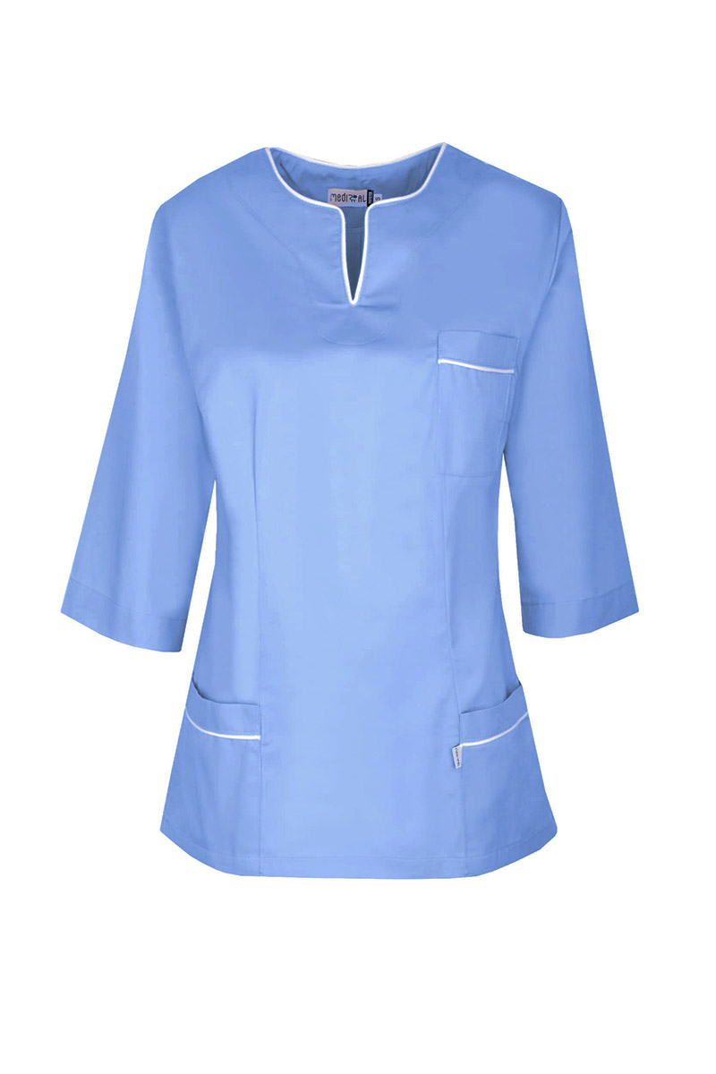Its elegant neckline is finished with white trimming and 3/4 sleeves are comfortable and practical,