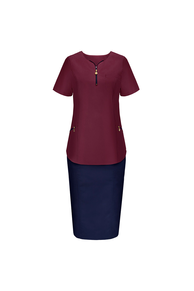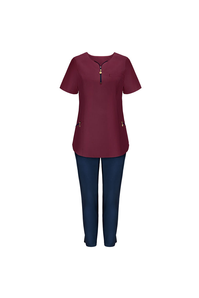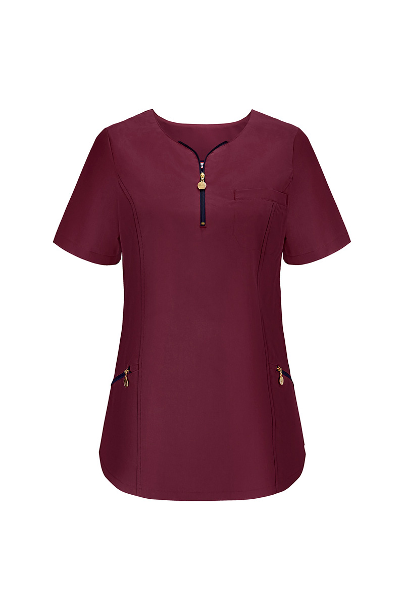 Ladies’ top medical zip neckline wine Emma