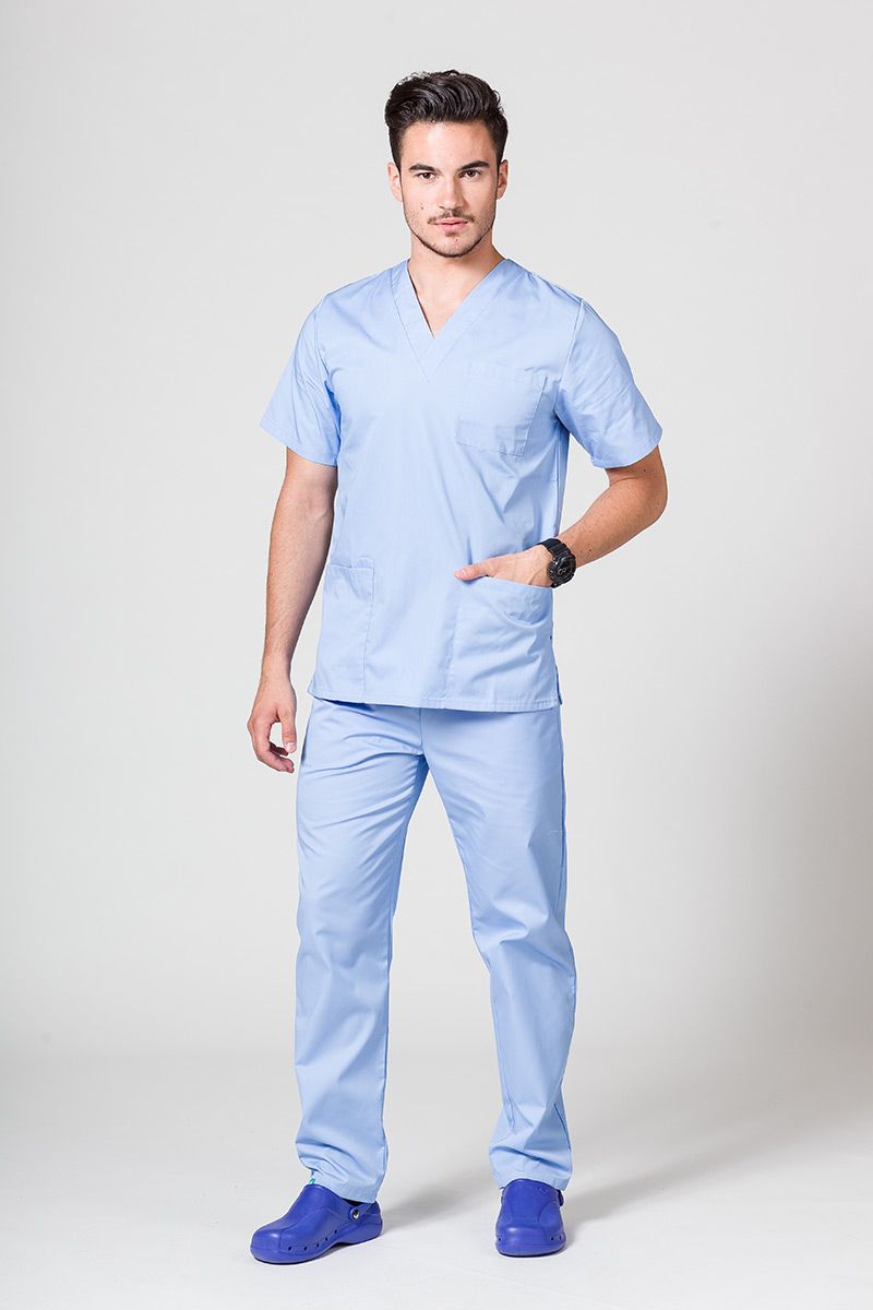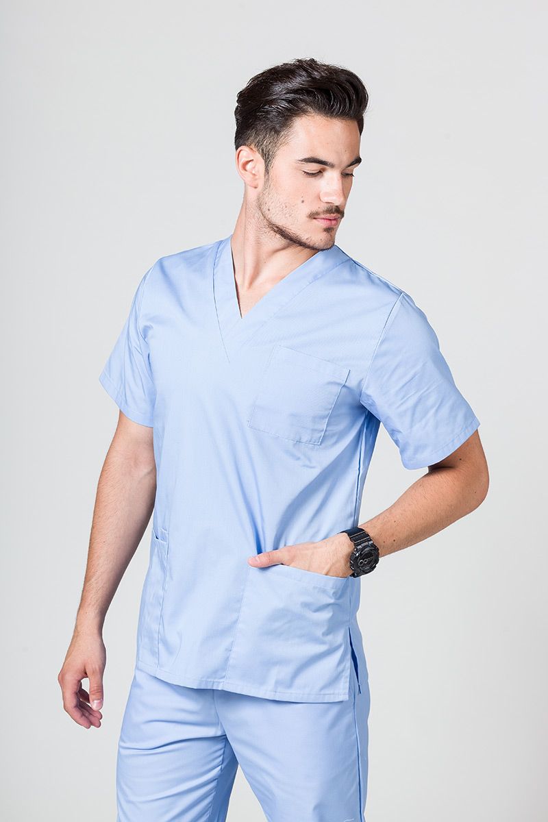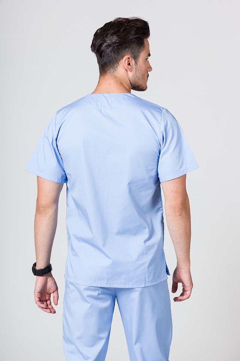 Men's 3-Pocket V-Neck Scrub Tops Sunrise Light Blue