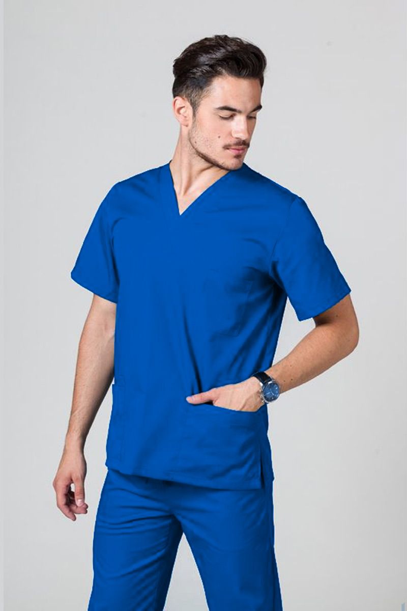 Men's 3-Pocket V-Neck Scrub Tops Sunrise Royal Blue