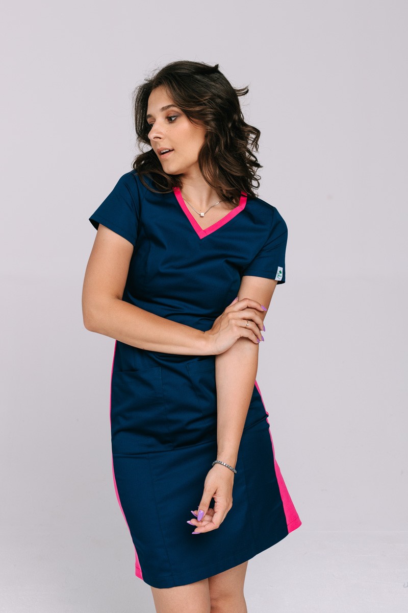 This navy medical dress with v-neck shape pink neckline is very modern proposition for all women