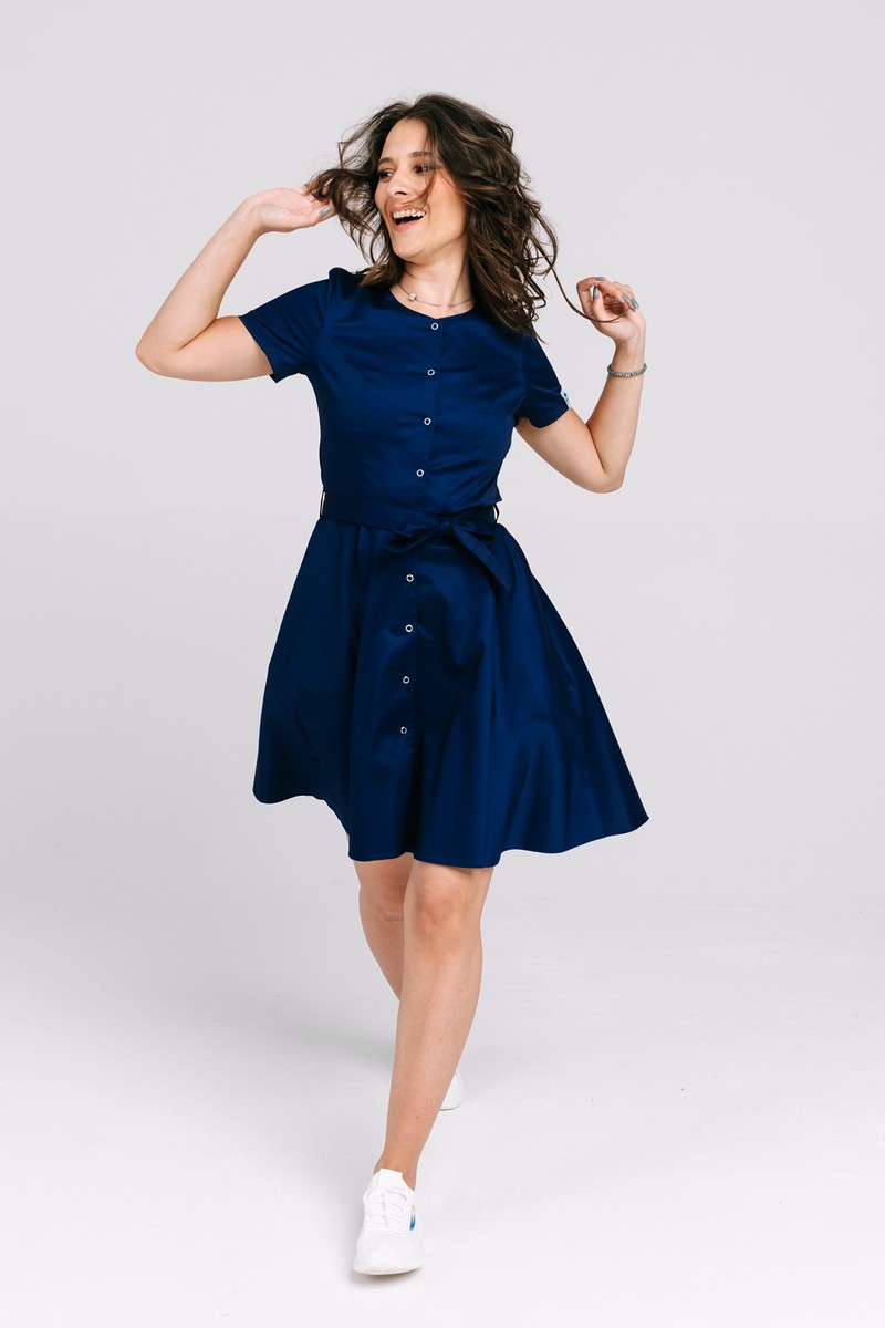 This navy dress is a unique proposition for women working both in medical sector and in beauty salons.