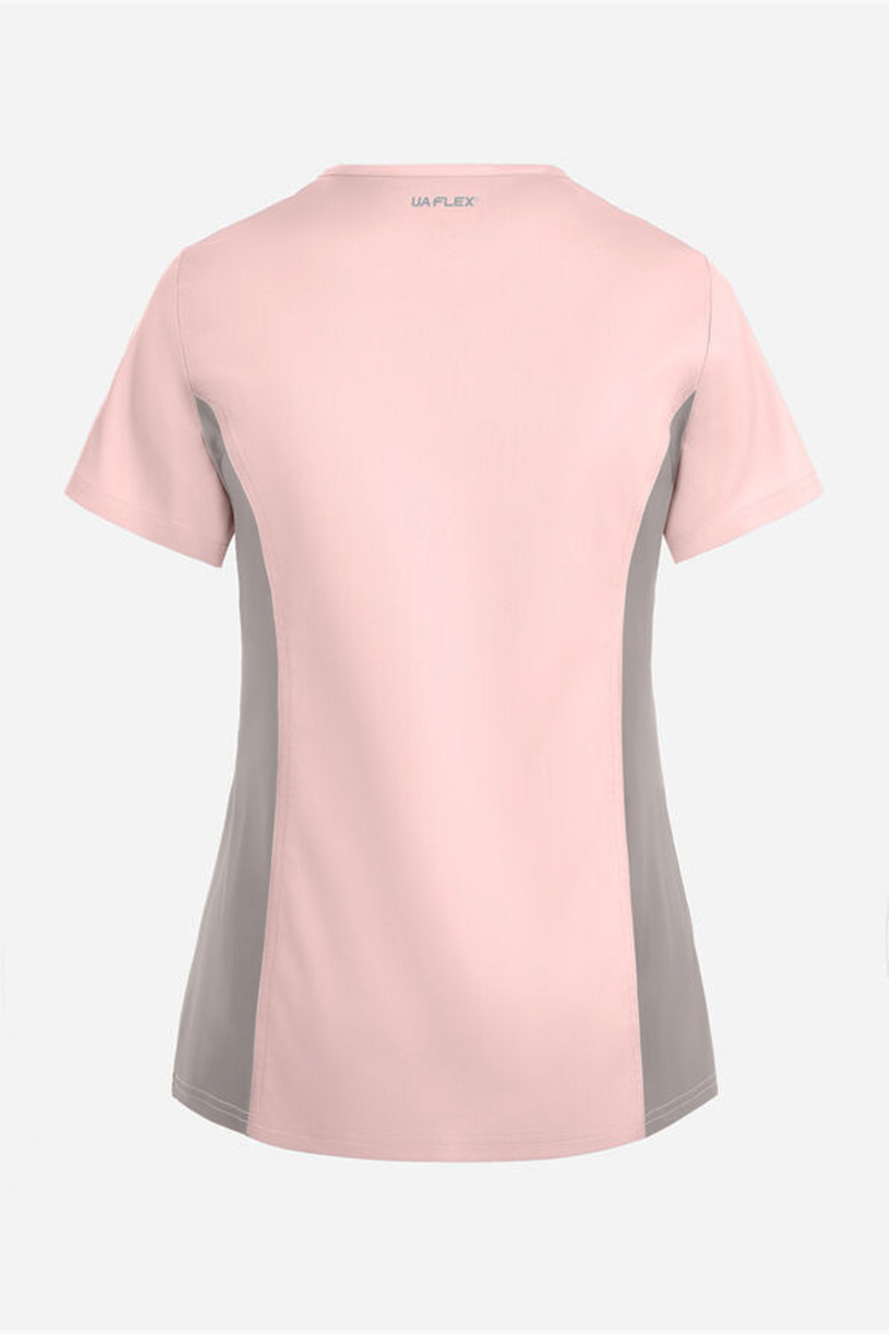 UA FLEX Woman's 3-Pocket Knit Side Panels V-neck Scrub Top Light Pink