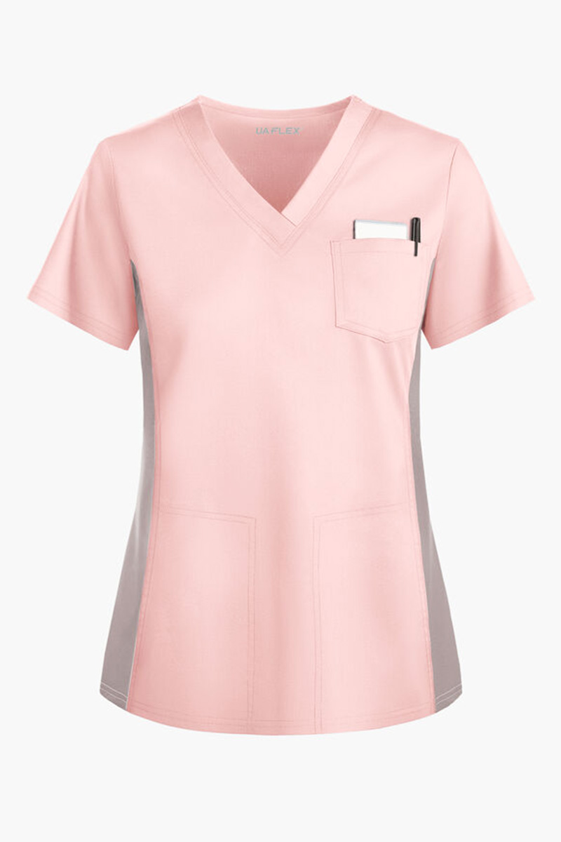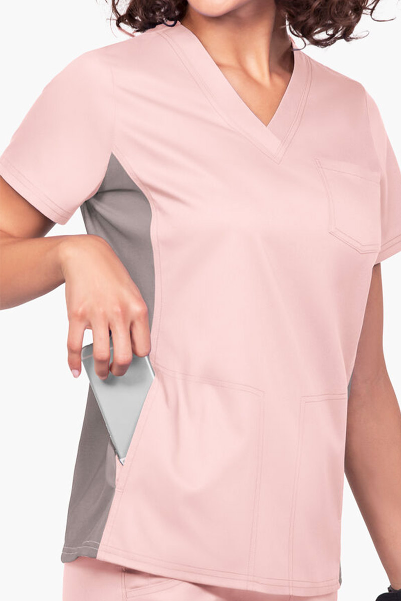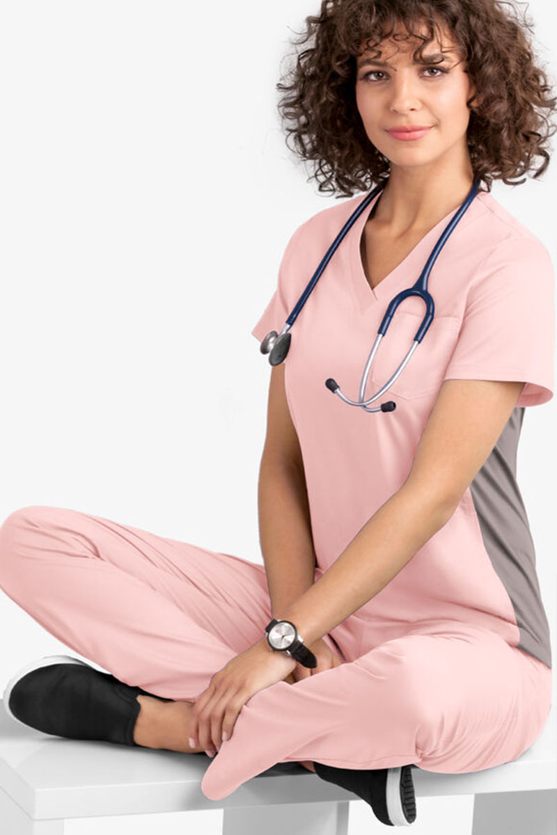 The light pink scrub top is a sleek and comfortable choice for busy healthcare professionals.