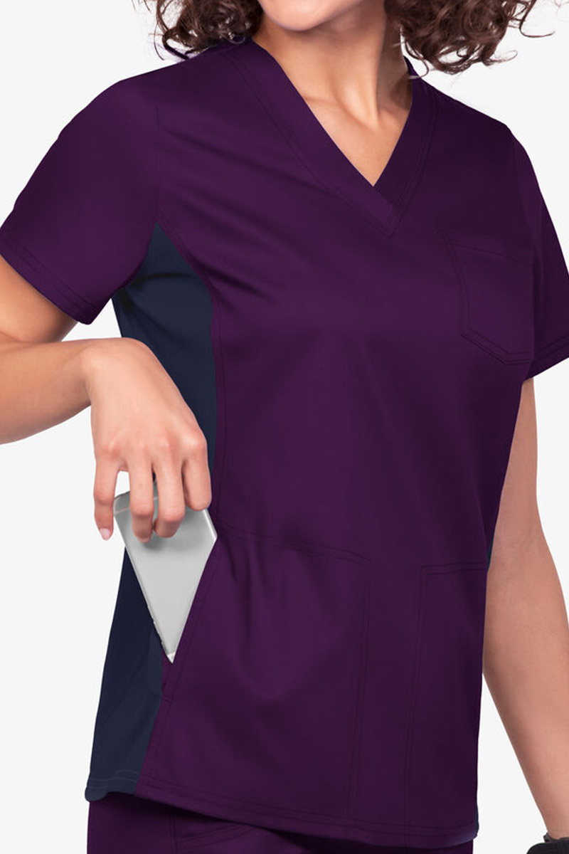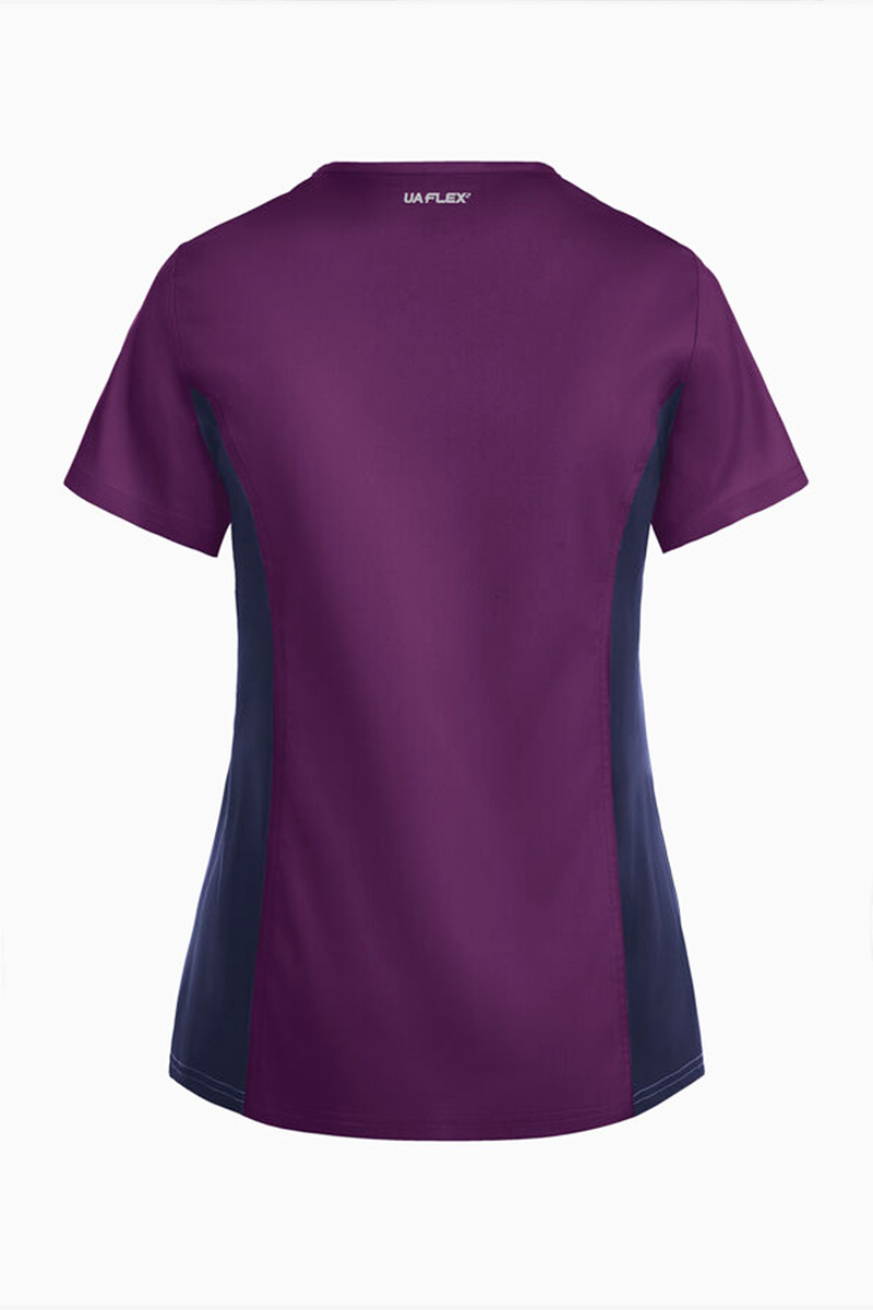 UA FLEX Woman's 3-Pocket Knit Side Panels V-neck Scrub Top Purple