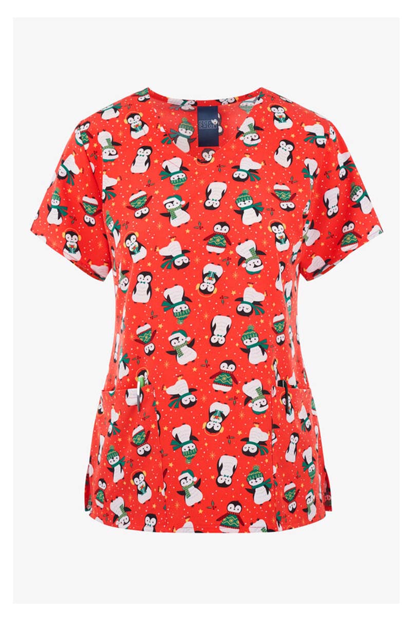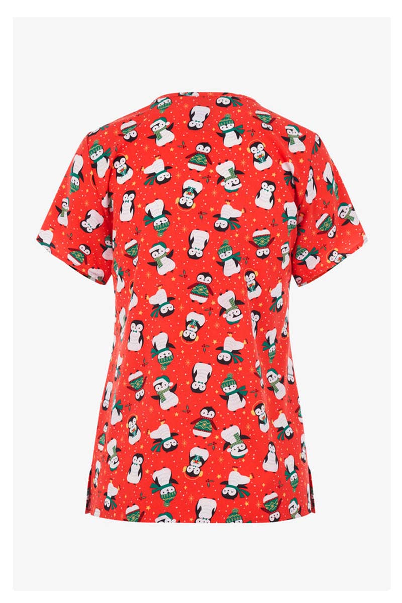 The Zoe & Chloe Penguin Pals Women's 2-Pocket STRETCH V-Neck Print Scrub Top