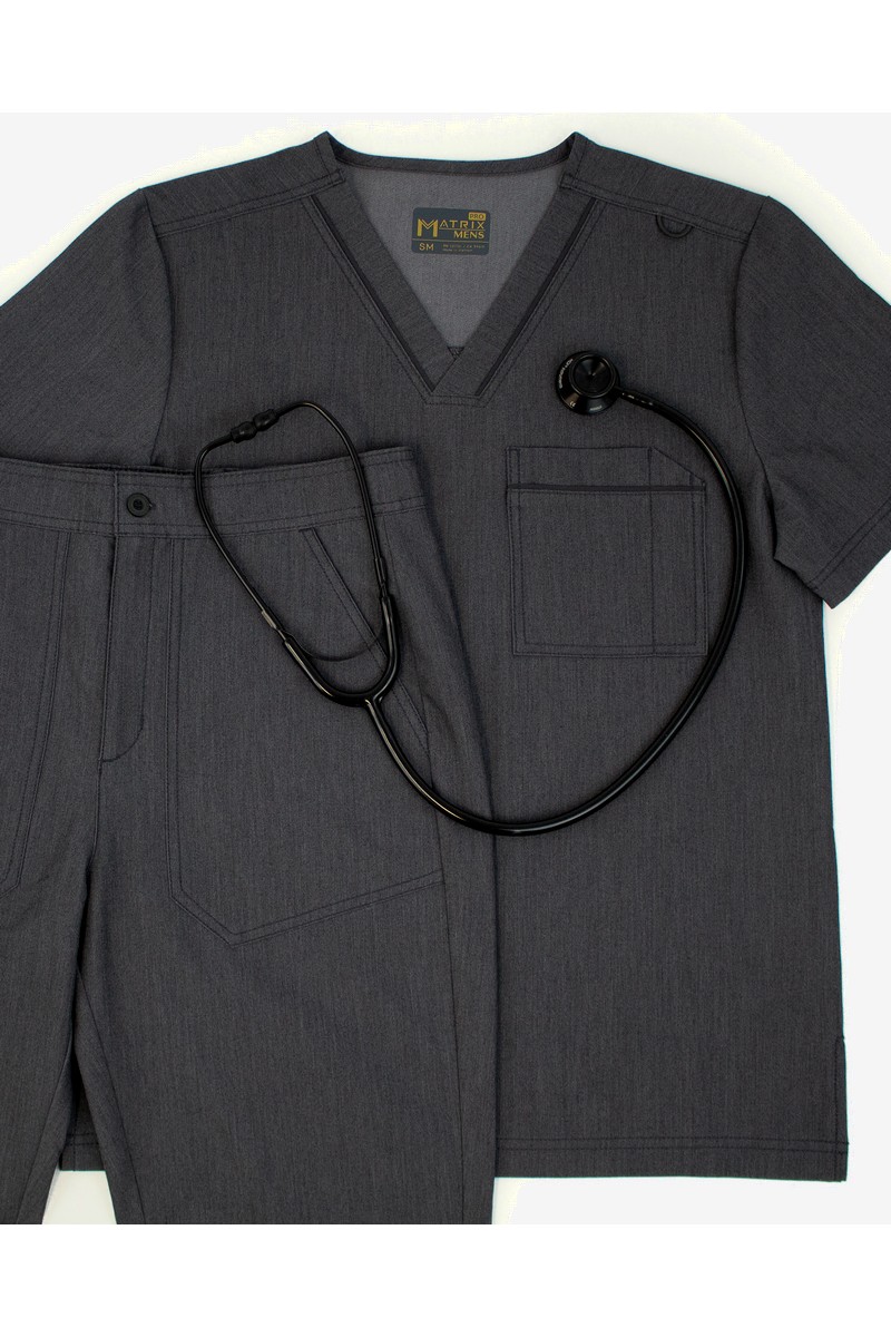 Matrix PRO™ V-Neck Scrub Top in Heather Grey – Contemporary Style and Performance
